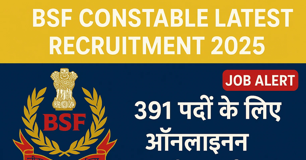 Border Security Force (BSF) 391 Constable (General Duty) Official notification has been released for the posts.Interested and eligible candidates 16 October 2025 From 04 November 2025 Official BSF website bsf.gov.in…